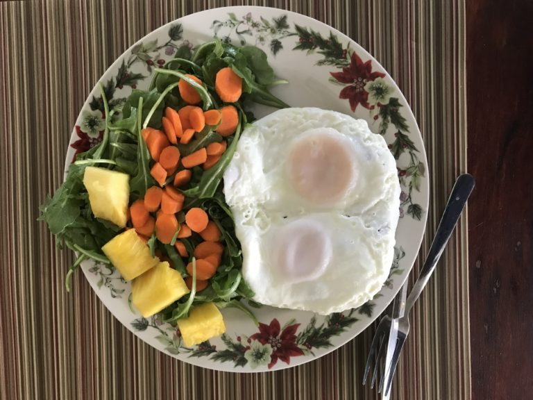 This picture is a great example of what eating REAL FOOD looks like. An attractive array of colors with a fresh salad of arugula, raw carrots, and a splash of pineapple. A light homemade vinaigrette salad dressing makes this meal simple yet satisfying. You will not be hungry for hours…. Eating a balanced low acidic,
